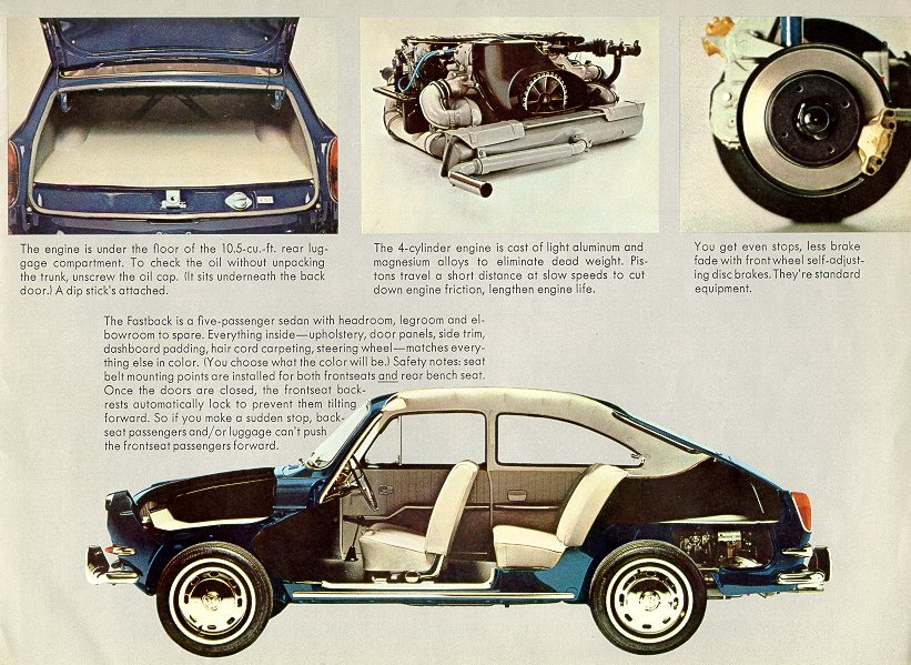 Again, this is just a cover from a Square. That would have to be an awefully short strap to hold the lid at any height. Every fastback I have seen has a little metal tab that holds the lid up. I guess if this was different for other countries, but I doubt it. Please see the following for a year to year display of "the tab". Here is a 72 with tab: http://www.thesamba.com/vw/gallery/index.mv?photo+27478.jpg 66 Brochure with the tab to the left: http://www.thesamba.com/vw/archives/lit/66fastpamp7.jpg 67 Brochure with the tab to the left: http://www.thesamba.com/vw/archives/lit/andre/67type3s/BackLowerRightQuarter .jpg 71 Brochure with the tab holding lid: http://www.thesamba.com/vw/archives/lit/71cdntype3s/11.jpg Jason Smith 71 Square >Surely there is somewhere to hook it - the gutter! >Ade jason.smith@sarcom.com wrote: >>>to do much of anything with the engine. Fastbacks (and notches, I >>>assume) >>>didn't get this strap, they just have a hook near the right >>> >>> >>hinge that you >>can >> >> >>>snag the right side latch loop into. >>> >>> >>mine has the remnants of a canvas type strap on the engine >>cover, IIRC. but it >>was never completely there so i don't know what it used to >>look like. i suppose >>my cover could have been replaced with a square version, but >>everything else is >>original so i don't think so. >> >> > > >This must have been from a square. The strap would be useless on a fasty, >no where to hook it. The fasty's have the little tab on the left side top >of the trunk opening where the cover knob hooks over. > > >Jason Smith >71 Square FI AT >Columbus, OH USA >http://jasontsmith.tripod.com/vw.htm > >------------------------------------------------------------------- >List info at http://www.vwtype3.org/list | mailto:gregm@vwtype3.org > > > > >